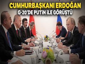Cumhurbaşkanı Recep Tayyip Erdoğan ve Rusya Devlet Başkanı Vladimir Putin G20 Liderler Zirvesi'nde bir araya geldi. Görüşmede Dışişleri Bakanı Mevlüt Çavuşoğlu, Hazine ve Maliye Bakanı Berat Albayrak, Milli Savunma Bakanı Hulusi Akar, Cumhurbaşkanlığı İletişim Dairesi Başkanı Fahrettin Altun, Cumhurbaşkanlığı Sözcüsü İbrahim Kalın, MİT Başkanı Hakan Fidan ve AK Parti Genel Başkan Yardımcısı Cevdet Yılmaz da hazır bulundu.