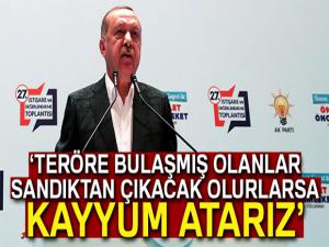 AK Parti kampının 5 yıl aradan sonra tekrar Kızılcahamam'da gerçekleştirildiğini söyleyen Erdoğan, 2 gün boyunca 2019 mahalli idareler çalışmalarını değerlendirdiklerini söyledi. Kamp boyunca yapılan çalışmaları anlatan Erdoğan, Kızılcahamam sadece doğası, yeşili, kaplıcaları ile bilinen bir yer değildir, aynı zamanda şehitler ve kahramanlar diyarıdır. Şehitler ağacındaki 6 bin 917 künye bu toprakları nasıl vatan kıldığımızın sembolüdür. O ağaçta aynı zamanda 15 Temmuz gecesi FETÖ'cü alçaklara meydanları dar eden bütün kahramanların adları da yer alıyor. Unutmayın, Ankara'daki şehitlerimiz arasında 4 tane Kızılcahamamlı kardeşimiz var. Bu şehitlerimizin üçü aynı aileden. Bin yıldır söz konusu vatansa gerisi teferruattır' diyerek canlarını hiçe sayan tüm kahramanlarımızı yad ediyorum. Şehitlerimizin kanını asla yerde koymadık, terör örgütlerinden döktükleri her damlanın hesabını soruyoruz. Tüm bu katil sürülerini kimlerin beslediğini, kimlerin himaye ettiğini, kimlerin lojistik destek verdiğini biliyoruz. Terör sorununu Türkiye'nin gündeminden tamamen çıkartmak zorundayız. Yurt içinde insansız hava aracı ve silahlı insansız hava araçlarımızın desteğindeki emniyet mensuplarımız teröristlere nefes aldırmıyor. Yılın 365 günü operasyonlar sürüyor. Hudutlarımız dışında da terör örgütlerine aman vermiyoruz. İçimizdeki kimi gafillerin engellemelerine rağmen 4 bin 584 teröristi etkisiz hale getirerek Afrin'i bölücülerin esaretinden kurtardık. Kuzey Irak'ta da operasyonlarımızı sürdürüyoruz. Askerimizin, polisimizin, güvenlik korucumuzun karşısına çıkmaya yüreği yetmeyen alçaklar bir dönem alt yapısını oluşturdukları kalleş pusularla bir yere varabileceklerini sanıyorlar, belediyelerin bölücü örgütün kontrolü altında olduğunda dönemde, bizzat belediye başkanlarının himayesinde yapılan bu hazırlıkları da deşifre ediyor, kayyumlarımız vasıtasıyla darmadağın ediyoruz. Milletin kepçesini, aracını, bütçesini teröristlere tahsis edenlerden hesabını sorduk, soruyoruz. Şimdi seçimler geliyor, bu seçimlerde de bu tür teröre bulaşmış olanlar, olur ya, sandıktan çıkacak olurlarsa öyle bekleyelim yok, anında gereğini yapıp kayyum tayinleri ile yolumuza devam edeceğiz. Beklemek yok diye konuştu.