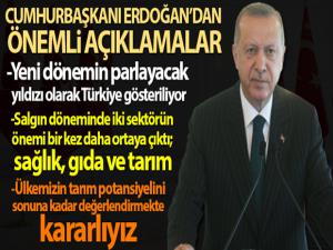 Konuşmasının devamında Cumhurbaşkanı Erdoğan, Salgın döneminde iki sektörün önemi bir kez daha ortaya çıkmıştır. Bunlardan birisi sağlık diğeri gıda ve tarımdır. Elimizdeki imkanları bu süreçte pek çok dost ve kardeş ülke ile de paylaştık. Pek çok ülkede temel ihtiyaçlar karşılanamazken ülkemizde hiçbir sıkıntı ile karşılaşmadık. Çünkü Türkiye kendi ihtiyacını karşılamanın ötesinde üretim gücüne sahip bir ülkedir.