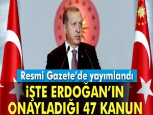 Cumhurbaşkanı Recep Tayyip Erdoğan'ın onayladığı kanunlar şöyle: