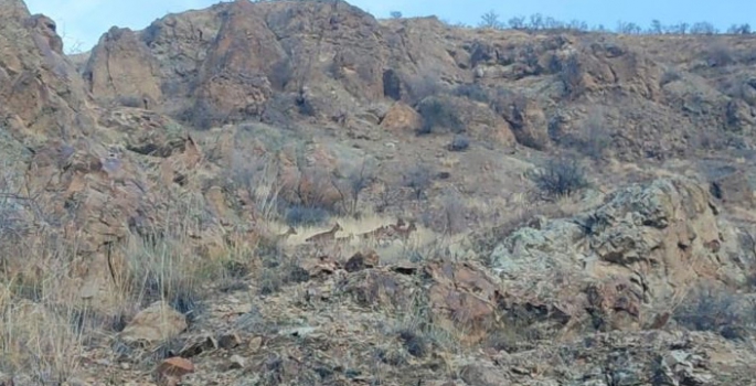 Karayolu üzerinde görüntülenen dağ keçisi sürüsünün hareketli halleri ve taşların üzerindeki koşturmaları dikkat çekti.