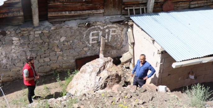 Oltu'nun Gökçedere Mahallesi'nde ikamet eden İsrafil Yılmaz (53), "Her yağmur sonrası evde korku ile yaşıyoruz. Her an kayaların üzerimize geleceğinden dolay tedirgin oluyoruz. Geçtiğimiz günlerde akşam üstü dağdan kopan devasa kaya evin arka bölümündeki tahta merdivene çarparak durdu. Evde çatlaklar oluştu. Bu taş uçtuğunda evdeydik ve bir gürültü ile dışarı çıktık. Kaya direkt eve çarpsaydı altında kalacaktık. Mağduruz ve korku içinde bekliyoruz" dedi.