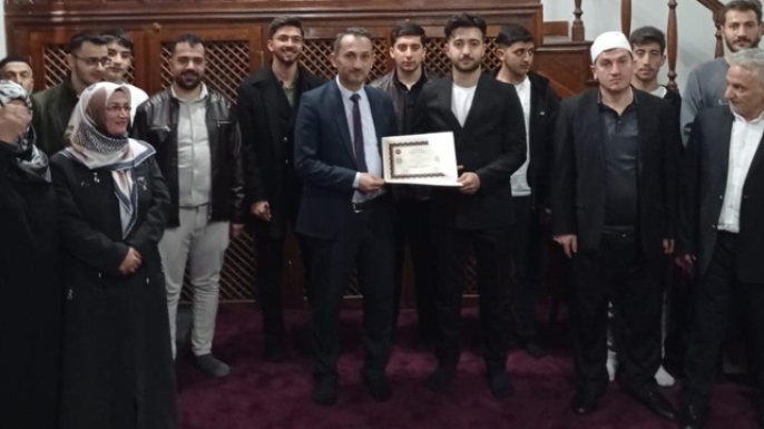 Ziyaret kapsamında, hafızlığını tamamlayan bir öğrenci belge takdim töreni düzenlendi. Genç hafıza Hafızlık Belgesi’ni bizzat takdim eden Dr. Sebahattin Erdoğan, hafızlığın sadece bir ezber değil, bir ömür boyu taşınacak mukaddes bir emanet olduğunu vurguladı.