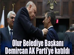 Başkan Demircanın AK Partiye katılmasından dolayı bir açıklama yapan Erzurum İl Başkanı Mehmet Emin Öz, Sayın Demircanın partimize katılımı AK Parti Grup Toplantısının hemen ardından coşkuyla gerçekleştirildi. Başta Sayın Cumhurbaşkanımız olmak üzere AK Parti Yerel Yönetimlerden Sorumlu Genel Başkan Yardımcısı Sayın Mehmet Özhaseki ve Ak Parti Erzurum Milletvekilleri, tören sonunda güzel bir birliktelik selamı verdi. Bu Olur halkı için de bir müjde anlamına gelmektedir. Türkiyenin hizmet eden yüzü, eserler bırakan, ülkenin makus talihini değiştiren parti olarak yeniden Olura hizmet edeceğimiz için mutluyuz. İfadelerini kullandı.