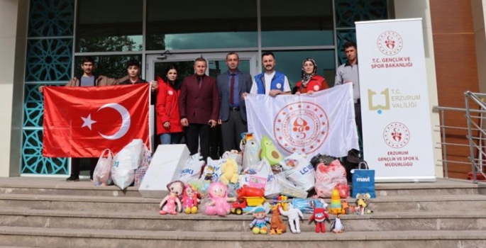 Ayrıca depremden etkilenen ve Oltu’da misafir edilen ailelerin çocuklarına teslim edilmek üzere yaklaşık 300 adet oyuncak gönderildi.