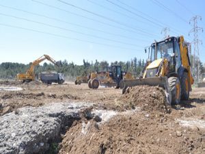 Bir yandan dozer, grayder, eskavatör, kepçe ve kamyonlar şantiye sahasında ihtiyaç duyulan altyapı çalışmalarını gerçekleştirirken, diğer yandan projenin 24 saat esasına göre devam etmesi için gereken konteyner ve prefabrik yapıların yerleştirilmesine başlandı.