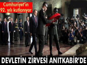 "Türkiye Büyük Millet Meclisi'nin ilan ettiği Cumhuriyetimizin 92. yıl Dönümüne ulaşmış olmanın mutluluğu içerisindeyiz. Bölgemizde tarihi olayların cereyan ettiği bir dönemde kuruluş yıl dönümünü kutladığımız Cumhuriyetimizi, tek millet, tek bayrak, tek vatan, tek devlet ilkeleri çerçevesinde ilelebet yaşatmanın azim ve kararlılığı içinde olduğumuzu, bu vesileyle bir kez daha ifade ediyoruz. Ülkemizin Türkiye Büyük Millet Meclisi tarafından seçilen ilk Cumhurbaşkanı olan zatıalinizin bizlere bıraktığı emanet olan Cumhuriyetimizi, doğrudan halkın oyuyla seçilmiş ilk Cumhurbaşkanı sıfatıyla daha da yükseltmek ve muhasır medeniyet seviyesinin üzerine çıkartmak için tüm gücümüzle çalışmaya devam edeceğiz. 92 yıl sonra bir kez daha ülkemizin bütünlüğü, milletimizin birliği, devletimizin bekası için gerektiğinde gözlerini kırpmadan ölüme giden tüm şehitlerimizi rahmetle anıyor, gazilerimizi saygıyla yad ediyorum. Cumhuriyet Bayramımız kutlu olsun. Ruhunuz şad olsun