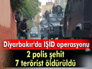 Diyarbakır'da terör örgütü IŞİD'e yönelik bugün sabah saatlerinde başlatılan operasyon sona erdi. 2 polisin şehit olduğu, 5 polisin de yaralandığı operasyonda, 7 terörist ölü, 12 terörist de sağ olarak ele geçirildi.
