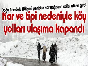 Erzurum'da kar yağışı ve tipi nedeniyle 27 köy yolunda ulaşım sağlanamıyor. Erzurum Büyükşehir Belediyesinde görevli 235 personel ve 188 araç ile ulaşıma kapanan yolların da bulunduğu bin 540 mahallede karla mücadele çalışmaları aralıksız sürdürülüyor.