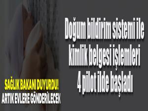 Doğumun gerçekleştiği sağlık tesisinde kimlik belgesi işlemlerini tamamlayıp elektronik ortamda nüfus müdürlüklerine ulaştırdıklarını açıklayan Koca, Bu sistemle vatandaşlarımızın nüfus müdürlüklerine gitmesine gerek kalmadan, bebeğin kimlik kartının basılarak adrese teslimini sağlıyoruz. 4 pilot ilde bugüne kadar bin 200 bebeğimizin kimliği adresine gönderildi. Bunun için ailenin doğumdan sonraki 5 gün içinde başvuruda bulunarak bir form doldurması yeterli oluyor. Elbette bildirim sırasında çocuğa verilecek ismin belirlenmiş olması gerekiyor dedi.