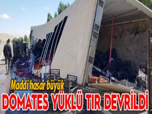 Edinilen bilgiye göre, sabah saatlerinde Erzurum'un Aşkale ilçesinde Erzincandan Erzurum istikametine seyir halindeki 07 ALJ 573 plakalı Domates yüklü TIR Aşkale Belediyesi Kır Düğün Salonu mevkiine geldiğinde sürücüsünün direksiyon hakimiyetini kaybetmesi sonucu orta refüje düşerek yan yattı.