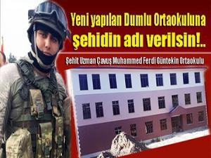 Erzurumun Dumlu köyünde yaşayan vatandaşlar, Şırnakta çıkan çatışmada şehit düşen Muhammed Ferdi Güntekinin isminin yeni yapılan Dumlu Ortaokuluna verilmesini istiyor.