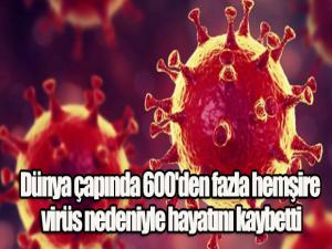 Uluslararası Hemşireler Konseyi'nin yaptığı açıklamada, dünya çapında 600'den fazla hemşirenin Covid-19 nedeniyle hayatını kaybettiği belirtildi. Dünya çapında 230 binden fazla sağlık çalışanının salgının başlangıcından bu yana yeni ile sözleşme imzalayarak sağlık sitemine katıldığı aktarıldı. Vaka sayısının ortalama yüzde 7'sini sağlık çalışanlarının oluşturduğu ifade edildi.