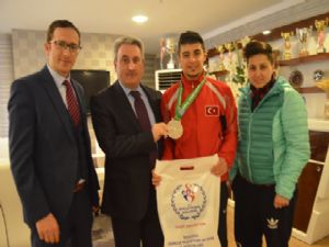 Kasım ayında İrlanda'nın Başkenti Dublin'de yapılan Büyükler Kick Boks Dünya Şampiyonası'nda ikinci olarak ülkemize gümüş madalya kazandıran, Erzurum Büyükşehir Belediyesi Gençlik Spor Kulübü Sporcusu Cebrail Gençoğlu, Erzurum Gençlik Hizmetleri ve Spor İl Müdürü Fuat Taşkesenligil'i ziyaret etti. Erzurum Büyükşehir Belediyesi Spor AŞ Genel Müdürü Ahmet Dal ve antrenör İlknur Yılmaz ile birlikte Taşkesenligil'i ziyaret eden Gençoğlu, başarı öyküsünü anlattı. Milli sporcu bundan böyle daha sıkı bir çalışma yaparak dünya ve Avrupa şampiyonu olacağına inandığını söyledi.