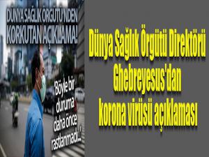 Çin'in Wuhan kentinde ortaya çıkan ve dünyanın birçok ülkesinde yayılmaya devam eden korona virüsü ile ilgili Dünya Sağlık Örgütü (WHO) Genel Direktörü Tedros Adhanom Ghebreyesus'dan açıklama geldi. Örgütün Cenevre'deki merkezinde dün basın toplantısı düzenleyen Ghebreyesus dünya toplumları arasında bu kadar hızla yayılan bir salgına daha önce şahitlik edilmediğini söyledi. Buna rağmen salgının gerekli tedbirlerle kontrol edilebileceğinin altını çizen Ghebreyesus, salgını kontrol altında tutma çabalarının tüm ülkelerin önceliği olarak kalması gerektiğini vurguladı.