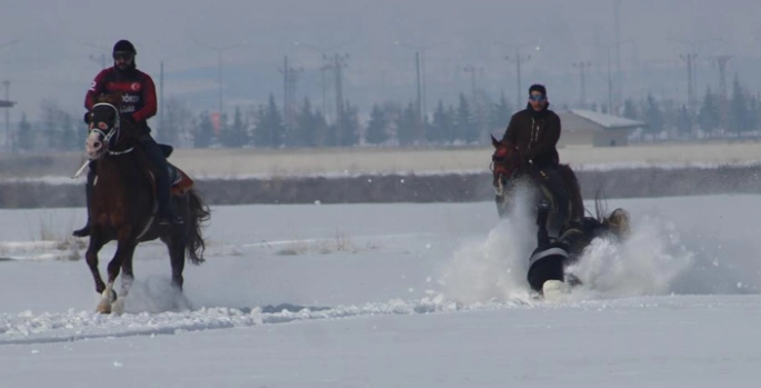 Erzurum'da EİT 2025 Turizm Başkenti etkinlikleri kapsamında düzenlenen ve kar üzerinde gerçekleştirilen at yarışları zaman zaman yürekleri ağızlara getirdi.