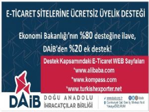 Doğu Anadolu İhracatçılar Birliği (DAİB), Uluslararası piyasalarda Türk ihraç ürünlerinin bilinirliğinin artırılması, ihracatçıların yeni pazarlara açılmaları, mevcut pazarlardaki ihracatlarını artırmaları, e-ticareti etkin ve verimli bir şekilde kullanmaları, ürünlerini çok düşük bir maliyetle uluslararası piyasalarda ve sektörün önde gelen e-ticaret sitelerinde tanıtma imkanı bularak, e-ticaretten de pay almalarına katkı sağlaması için, firmaların uluslararası piyasalara yönelik faaliyet gösteren E-Ticaret sitelerine yapacak oldukları üyelik giderlerinin yüzde 80'inin Ekonomi Bakanlığınca en fazla 3 yıl boyunca desteklendiğini vurguladı.