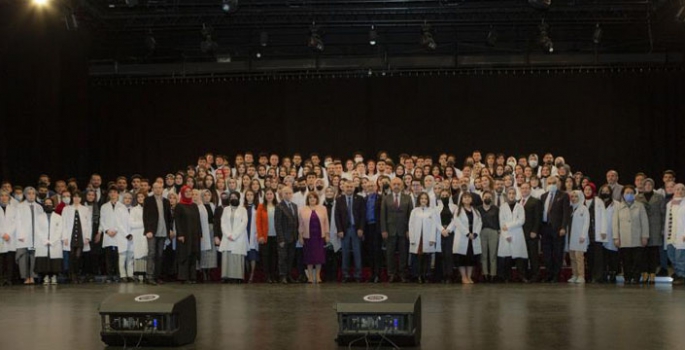 Müzik dinletisiyle devam eden program, Eczacılık Fakültesi birinci sınıf öğrencilerinin önlüklerini giymesiyle son buldu.