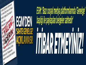Emniyet Genel Müdürlüğü (EGM), sosyal medya platformlarında 'Genelge' başlığı ile paylaşılan tam kapanma içerikli sahte belgelere itibar edilmemesi gerektiğini açıkladı.