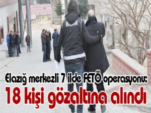 Fetullahçı Terör Örgütü/Paralel Devlet Yapılanması (FETÖ/PDY) soruşturması kapsamında Elazığ merkezli 7 ilde düzenlenen operasyonda 18 şüpheli gözaltına alındı.