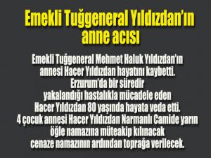 Emekli Tuğgeneral Mehmet Haluk Yıldızdanın annesi Hacer Yıldızdan hayatını kaybetti.