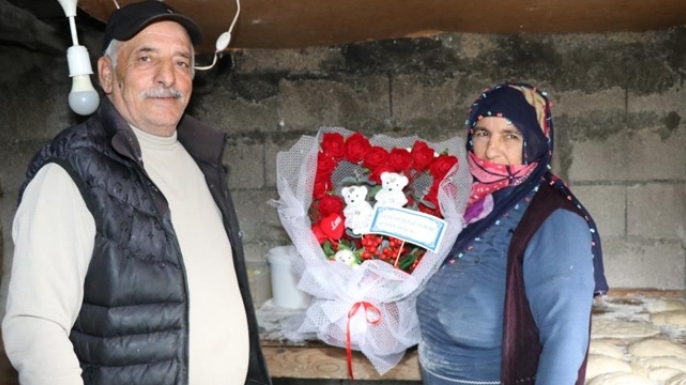 Tandır başında çalışırken eşinin getirdiği çiçekle duygulanan Aynur Başar ise, 14 Şubat’ta yapılan sürprizden dolayı büyük mutluluk duyduğunu ifade ederek eşine teşekkür etti.