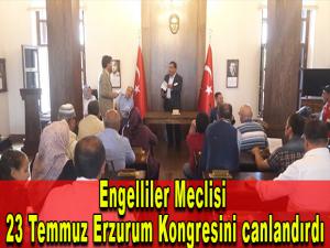 Erzurum Kent Konseyi Engelliler Meclisi 23 Temmuz Erzurum Kongresinde yaşanan gelişmeleri ve alınan kararları tarihi kongre binasında meclisi toplayarak canlandırdı.