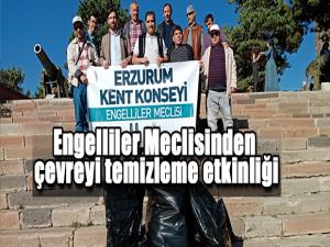 Ortopedik, görme ve işitme engelli bireylerden oluşan Erzurum Kent Konseyi Engelliler Meclisi Tabyalar, çevresi ve şehitliklerde saatlerce süren çevre temizlik çalışması yaparak çevrenin doğal görüntüsü bozan çöpleri toplayıp ecdada olan saygısını tescilledi.