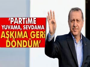 AK Parti asırlar öncesinden başlamış kutlu bir davanın mirasını omuzlarında taşıyan bir partidir demiştim o gün. Ayrılığımızın sona eriyor olması beni asıl bu bakımdan heyecanlandırıyor. Bu kutlu yürüyüşü önümüzdeki dönemde hep birlikte daha güçlü bir şekilde sürdüreceğiz. Buna inancım tam. Biz yola milletimizle birlikte çıkmıştık. Bugüne kadar hangi sorunun üstesinden gelebilmişsek milletimizin duası sayesinde gelebilmişizdir.