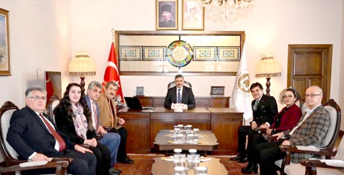 Vali Mustafa Çiftçi’yi, Başkan Ümit Gergit, İkinci Başkan Doğan Hattatoğlu, yönetim kurulu üyeleri Kadir Sabuncuoğlu, Vahit Alkır, Eda Alemder Çankaya, Kadın Kolları Başkanı Sevnur İçyar’dan oluşan ERSANDER heyeti, tarihi Erzurum Kongresinin yapıldığı binadaki makamında, ziyaret etti.