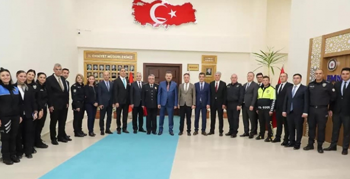 Erzurum İl Emniyet Müdürü Kadir Yırtar, Müdürlük kadrosunda görev yapmakta iken 1.Sınıf Emniyet Müdürü rütbesine terfi ederek Teftiş Kurulu Başkanlığına Polis Başmüfettişi olarak atanan Emniyet Müdür Yardımcısı Mustafa İzzet Ersoy’a rütbesini takarak yeni görev yerinde başarılar diledi.