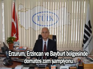 TÜİK Erzurum Bölge Müdürlüğü verilerine göre Erzurum, Erzincan ve Bayburt'un içerisinde yer aldığı TRA1 istatistik bölgesinin en çok zamlanan ve en çok ucuzlayan ürünleri açıklandı. Erzurum, Erzincan ve Bayburt'ta geçen ay yüzde 41,55 oranında fiyat artışıyla domates zam şampiyonu olurken, bunu yüzde 31,32 artış oranıyla yeşil soğan, yüzde 21,45 oranıyla çizme (kadın için), yüzde 19,00 oranıyla kaban yünlü (erkek için), yüzde 13,23 oranıyla artış gösteren kazak (çocuk için) izledi.