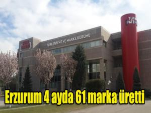 Erzurum'da nisan ayında 15, dört aylık düzeyde ise 61 marka başvurusu kaydedildi. Ocak ayında 15, şubat ayında 16, mart ayında 15, nisanda 15 marka başvurusunun gerçekleştiği Erzurum'un bölge başvuru payı yüzde 14,38, ülke başvuru payı ise yüzde 0,16 olarak belirlendi