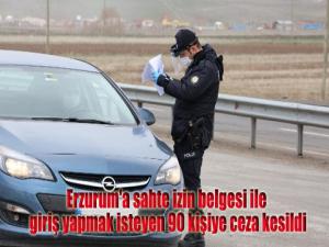 Korona virüs salgını nedeniyle giriş çıkışların kısıtlandığı iller arasında bulunan Erzurum'da giriş noktalarında yapılan kontrollerde Seyahat İzin Belgelerinin sahte olduğu tespit edilen 90 kişiye Resmi Belgede Sahtecilik suçundan adli işlem yapıldı. Ayrıca kişi başı 3 bin 150 TL olmak üzere toplam 283 bin 500 TL idari para cezası uygulandı.Para cezası uygulanan vatandaşlar kent girişinden geri çevrilerek geldikleri güzergâhlara gönderildi.