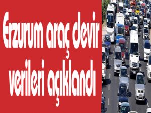 TÜİK Motorlu Kara Taşıtları devir verilerine göre Erzurum'da 2 bin 177'si otomobil, 99'u minibüs, 23'ü otobüs, 747'si kamyonet, 94'ü kamyon, 29'u motosiklet, 7'si özel amaçlı taşıt ve 183'ü de traktör olmak kaydıyla 3 bin 359 motorlu kara taşıtı el değiştirdi. Erzurum'un Doğu Anadolu Bölgesi toplamında el değiştiren araç sayısı payı yüzde 16.87 oldu