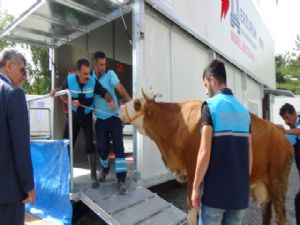 Erzurum Büyükşehir Belediyesi'nce Kurban Bayramında vatandaşın hizmetine sunulacak olan 11 adet mobil mezbaha, düzenlenen tören ve kurban kesimiyle tanıtıldı.