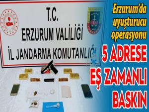 Erzurum İl Jandarma Komutanlığı sorumluluk bölgesinde yürütülen emniyet ve asayiş hizmetleri kapsamında yapılan çalışmalarda Uyuşturucu ve Uyarıcı Madde İmal ve Ticareti suçunu işledikleri tespit edilen ve takibi yapılan 6 şüpheli şahsa yönelik Erzurum İl Jandarma Komutanlığı ekiplerince, Aziziye, Yakutiye ve Palandöken ilçelerinde 5 adrese eş zamanlı operasyon düzenlendi.
