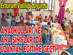Erzurumda korona virüs tedbirleri kapsamında anaokulları, ana sınıfları ve uygulama sınıflarında eğitim-öğretim 1 Aralık 2020 ile 4 Ocak 2021 tarihleri arasında uzaktan yapılacak.
