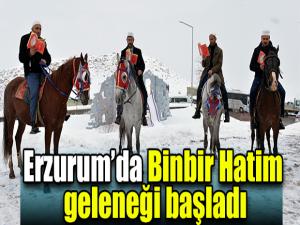 Erzurumda Pir Ali Baba tarafından şehri doğal afetlerden korumak için başlatılan Binbir Hatim geleneğine bu yıl da devam edildi. 17 Ocak Cuma günü sona erecek gelenek, ilk yıllarında olduğu gibi at sırtındaki hafızların temsili olarak şehri turlaması ile başladı.