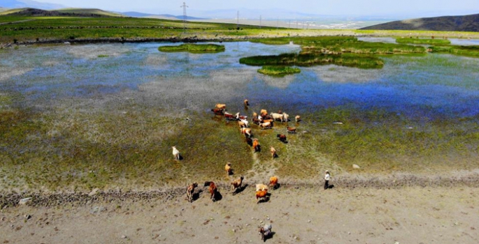 Son 50 yılın en kurak yaz mevsiminin yaşandığı Erzurum’da beklenen kuraklık kendini göstermeye başladı. Öyle ki yaylalarda yaz mevsimini geçiren küçükbaş ve büyükbaş hayvanların su ihtiyacını giderdiği doğal göletler kuruma seviyesine geldi.
