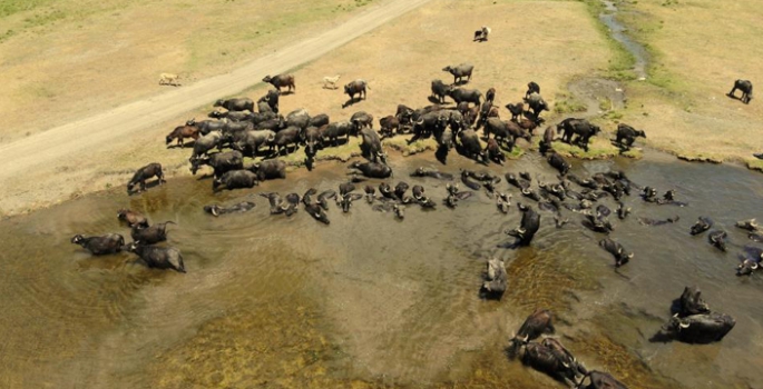 Erzurum’un Aziziye ilçesine bağlı Söğütlü köyünde sürü halinde meraya çıkan mandalar görsel şölen oluşturuyor. Sıcak havalar nedeniyle beslenmeden çok suya ihtiyaç duyan mandaların gölle buluşma anları ise belgeselleri aratmıyor.
