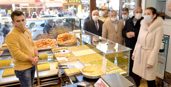Dükkanlara girerek uyarılarda bulunan Vali Yardımcısı Yıldız Büyüker esnafı maske, temizlik ve hijyen kuralları konusunda da uyardı, ayrıca dükkanlara fazla müşteri alınmaması konusunda da işletme sahiplerine tavsiyelerde bulundu.