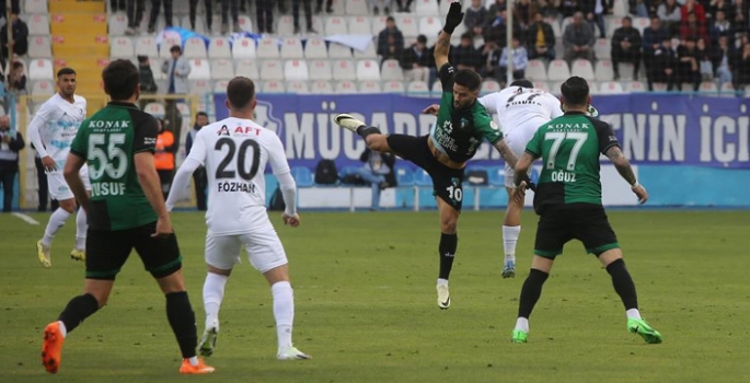 72. dakikada Kocaelispor’un sol kanattan geliştirdiği atakta topla buluşan Barış ceza yayına doğru topu sürerek sert şutunda kaleci Göktuğ topa sahip oldu.