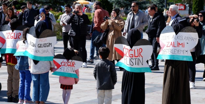 Sağlık personeli ve vatandaşların çocukları da taşıdıkları "Zulmü alkışlayamam, zalimi destekleyemem", "Özgür Filistin", "Direnen Gazze'ye bin selam" ve "Çocuk katillerinin ürününü alma" pankartlarıyla yürüyüşe destek verirken, bir çok kadında içinde kefenlenmiş bebek maketleri ve bebek arabalarıyla yürüyüşe katıldı.
