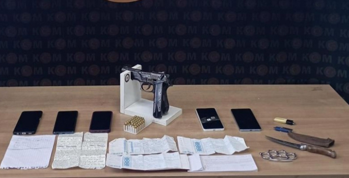 Operasyonda 10 ayrı adreste yapılan aramalarda, 1 adet ruhsatsız tabanca, 34 adet 9.19 mm çapında fişek, 3 adet dolu senet, 22 adet boş senet, 1 adet isim ve alacak bilgilerinin bulunduğu defter sayfası ve 6136 SKM suçu kapsamına giren 1 adet muşta ile 1 adet bıçak ele geçirildi.