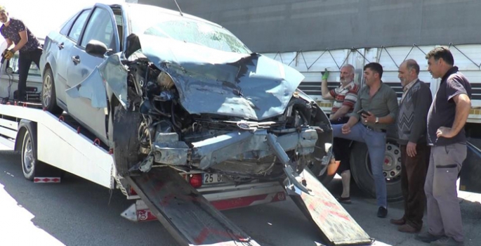 Musa A. yönetimindeki 25 GB 954 plakalı otomobil kırmızı ışıkta duramayarak karşı yoldan gelen 25 AAE 152 plakalı tırın altına girdi.