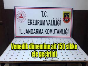 Erzurum Valiliğinden yapılan yazılı açıklamada, İl Jandarma Komutanlığı ekipleri, Palandöken ilçesindeki bazı kişilerin Kültür ve Tabiat Varlığı niteliğinde olduğu değerlendirilen tarihi eser bulundurdukları ve satmak için müşteri aradıkları yönünde ihbar aldı. İhbar üzerine harekete geçen jandarma ekipleri, şüphelilere yönelik operasyonda, altın rengi görünümünde, üzerinde eski medeniyetlere ait figürler bulunan ve Venedik dönemine ait olduğu değerlendirilen 150 sikkeyi ele geçirdi. Ele geçirilen tarihi eserler Erzurum Müze Müdürlüğüne teslim edildi.
