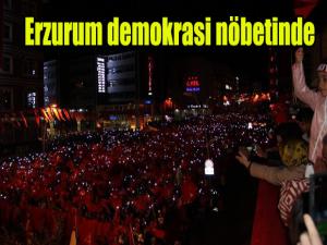 Vatandaşların 15 Temmuz Demokrasi ve Milli Birlik Gününde Erzurumda tuttuğu demokrasi nöbeti sabahın ilk ışıklarına kadar devam edecek.