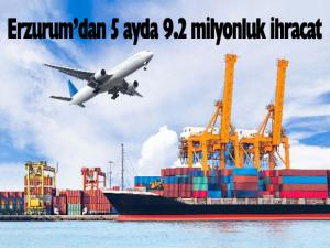 TİM verileri üzerinden yapılan değerlendirmeye göre, Erzurumdan bu yılın ilk beş ayında en fazla ihracat gerçekleştirilen dönem 2.9 milyon dolar ile mart ayı olarak belirlendi. Verilere göre Erzurumdan ocak ayında 1.2 milyon, şubat ayında 1.1 milyon, mart ayında 2.9 milyon, nisan ayında 2.2 milyon ve mayıs ayında ise 1.6 milyon dolarlık ihracat yapıldı.