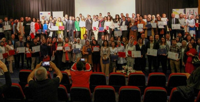 Törende, öğretmenlerin yürüttükleri eTwinning projeleriyle kazandıkları Ulusal ve Avrupa Kalite Etiketleri; okul müdürlerine de Ulusal ve Avrupa Kalite Etiketi Levhaları takdim edildi. Ödül Töreni, İl Müdürü Salih Kaygusuz’un öğretmenlerle çekildiği hatıra fotoğrafları ile son buldu.
